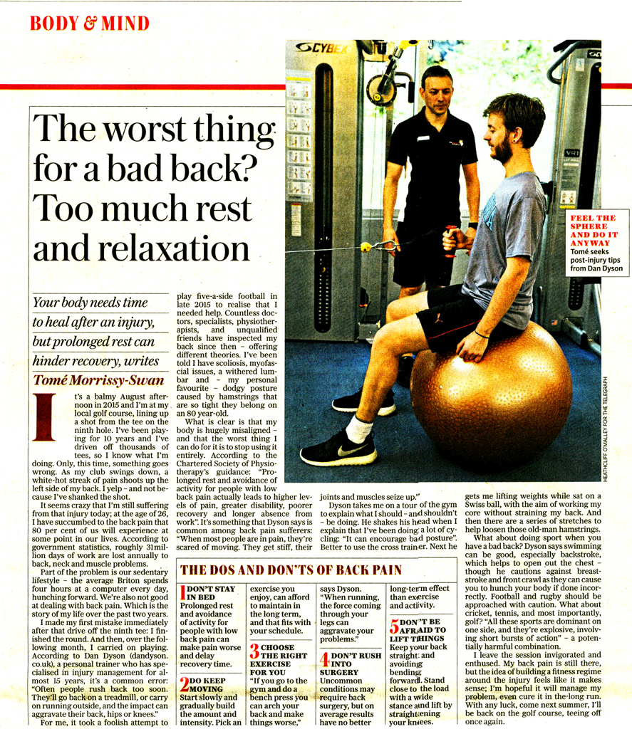 This article from the Telegraph describes the writer’s experiences after he hurt his back playing golf and describes these do’s and don’ts in more detail: